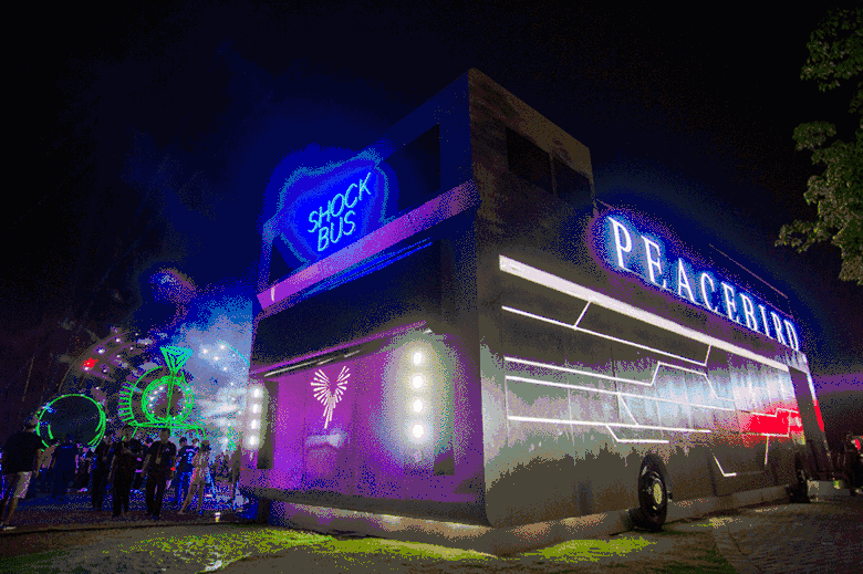 自从去年的鸟人音乐节轰动一时后,所有人都在期待着太平鸟的下一个“电音新动作”。最让人意想不到的是,今年出现在南京风暴电音节的是一辆PEACEBIRD SHOCK BUS,不仅换上了苏A的牌照,还藏这个露天风景台。