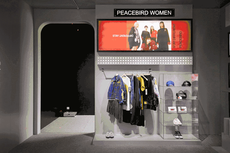 百事可乐GIRL合作款、男装的Snoopy合作款、乐町最新秋冬款、MATERIAL GIRL的茵宝合作款,还有小朋友们最宠爱的小黄人合作款,PEACEBIRD总是以独特的姿态去接近年轻人,全方位的与年轻人对话。